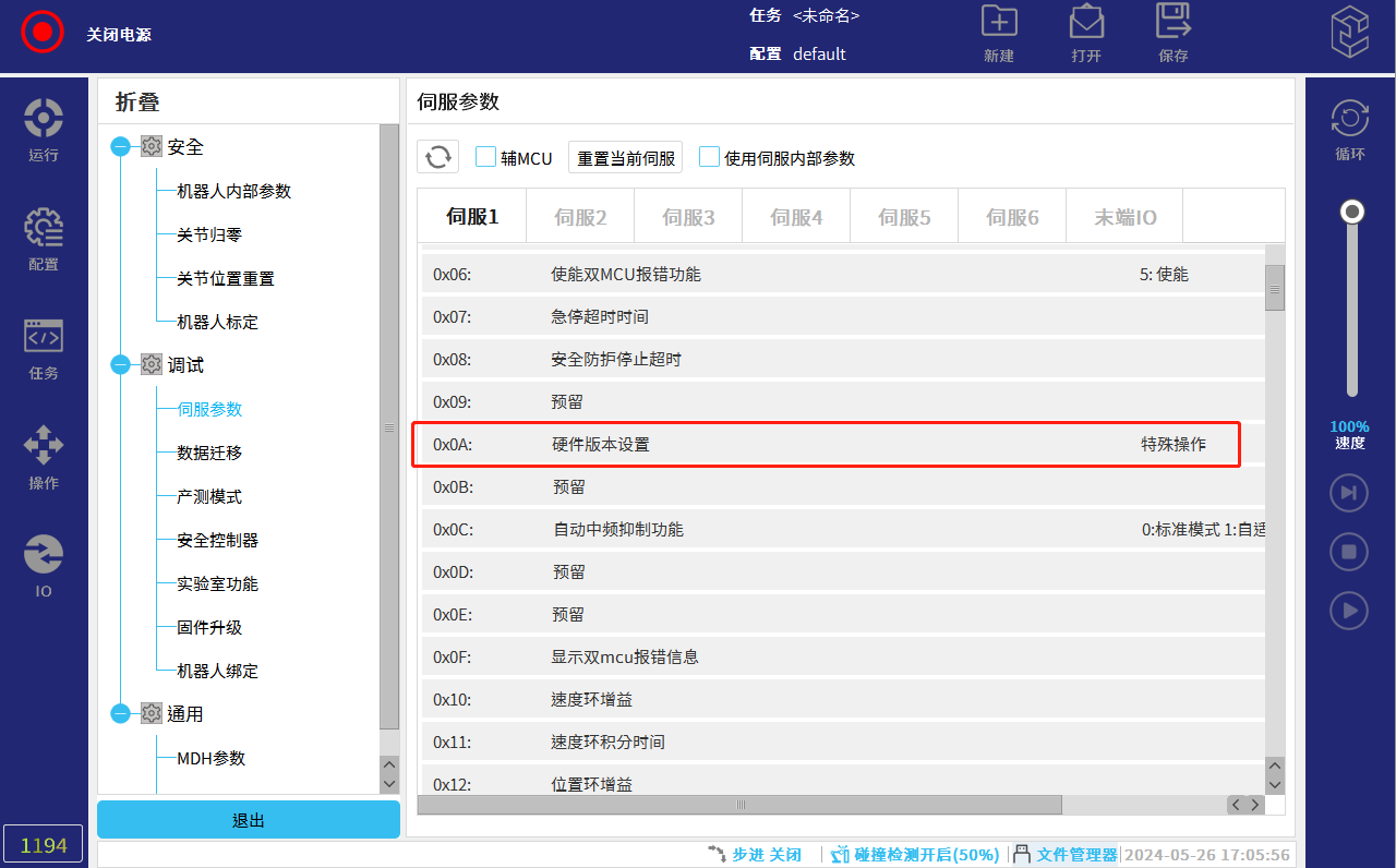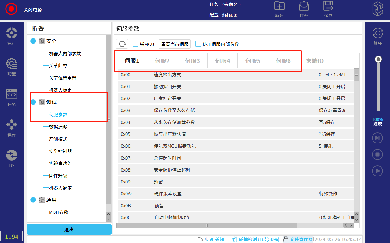 • 点击伺服-伺服参数,选择对应伺服,下拉查看0x74参数,