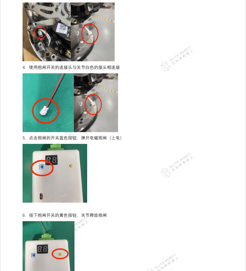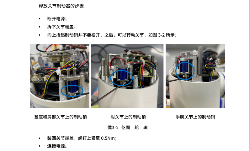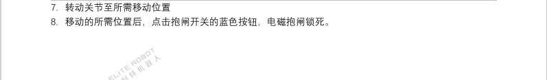 4. 伺服关节损坏报警异常后无法通过以上松开抱闸方法操作,需手动松开,具体参考CS服务手册操作指南