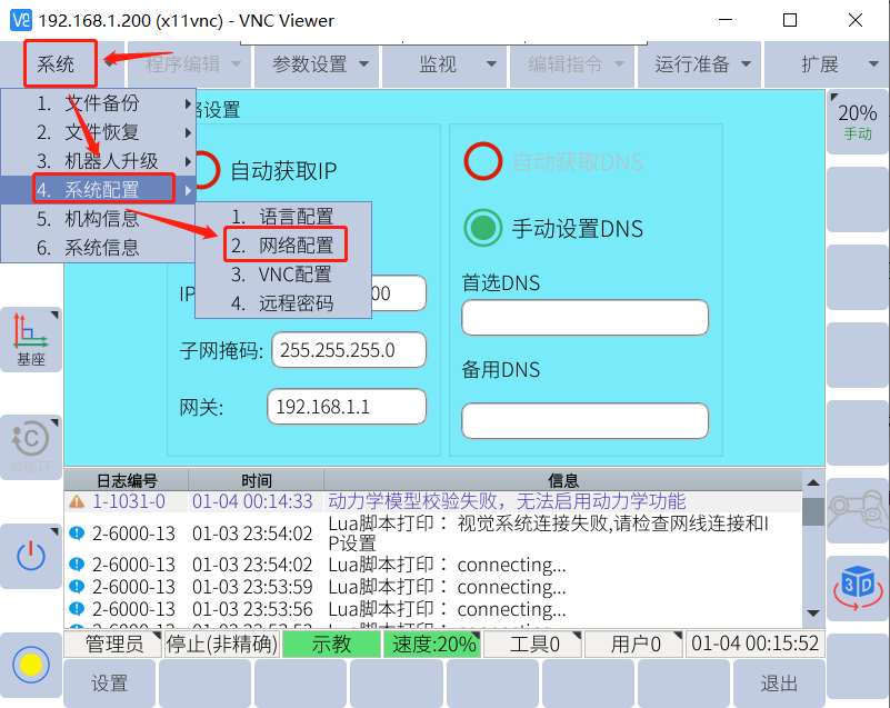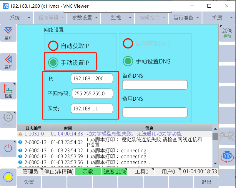 2、然后电脑与EC机器人通过网线相连接,设置为同一网段