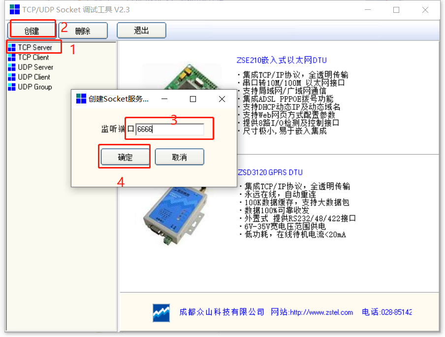 3.2.1、初始化TCP服务器,向客户端发送和接收客户端的数据