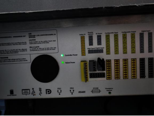 ● 按下示教器开机按钮后,观察下图两个指示灯是否亮起,两个都亮则Safe IO板异常