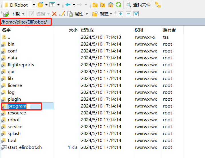 利用FTP软件连接成功之后,在机器人文件系统内,按照下图目录找到program文件夹