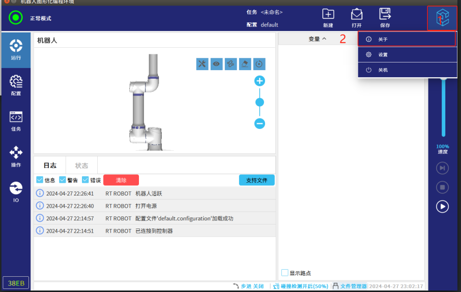示教器在主界面点击进入关于查看机器人型号