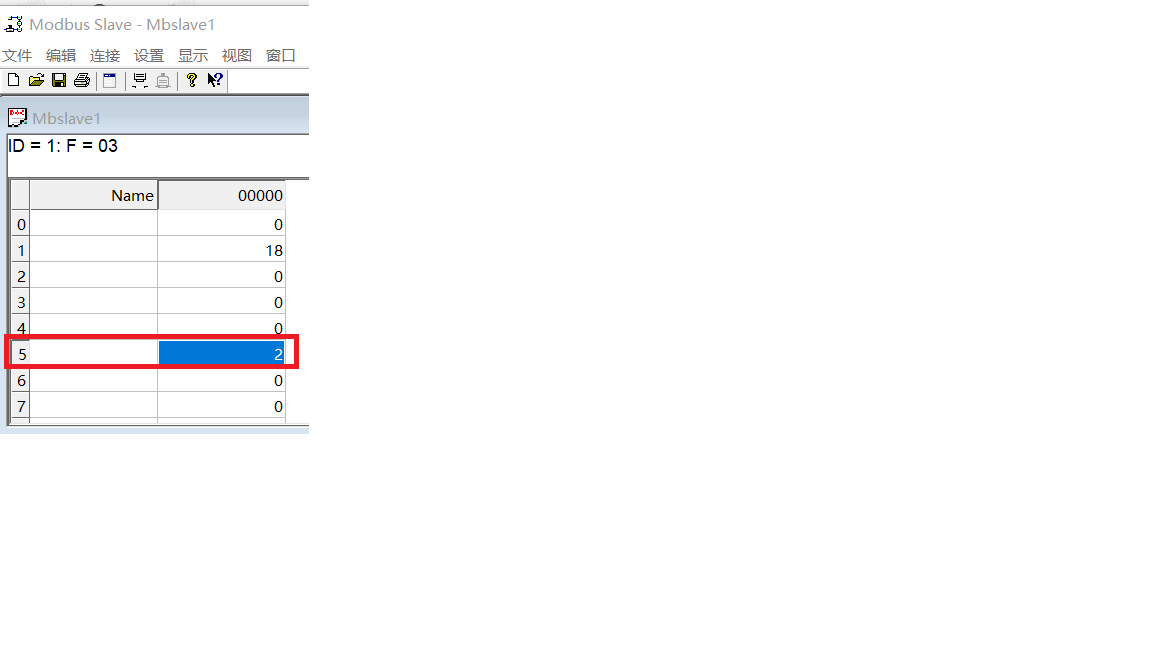 随后运用调试助手向寄存器5写入2,运行读取寄存器脚本。