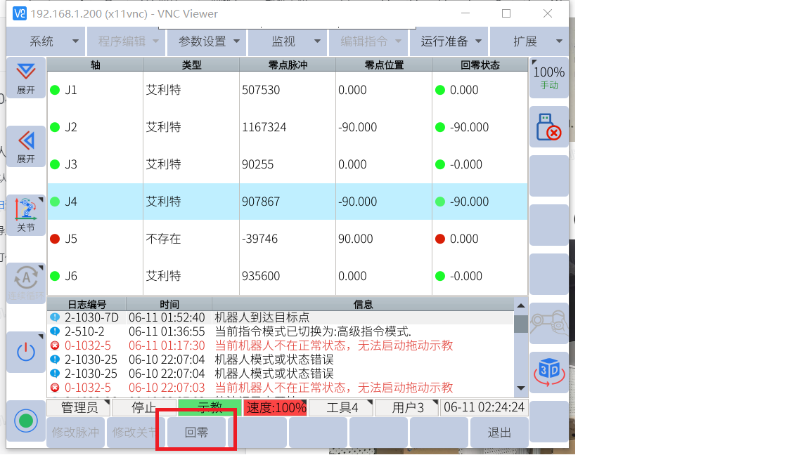 手动打开伺服点击回零